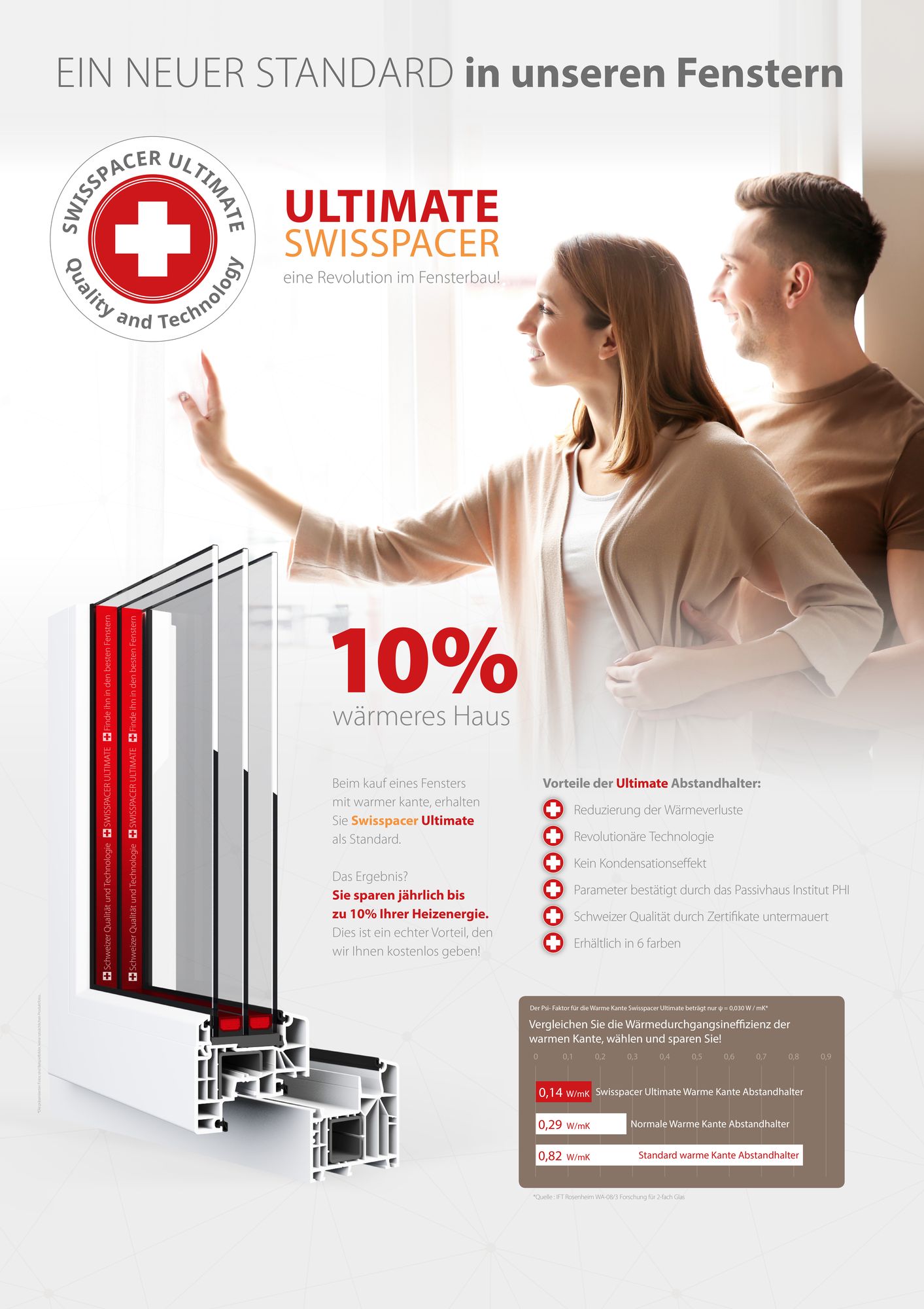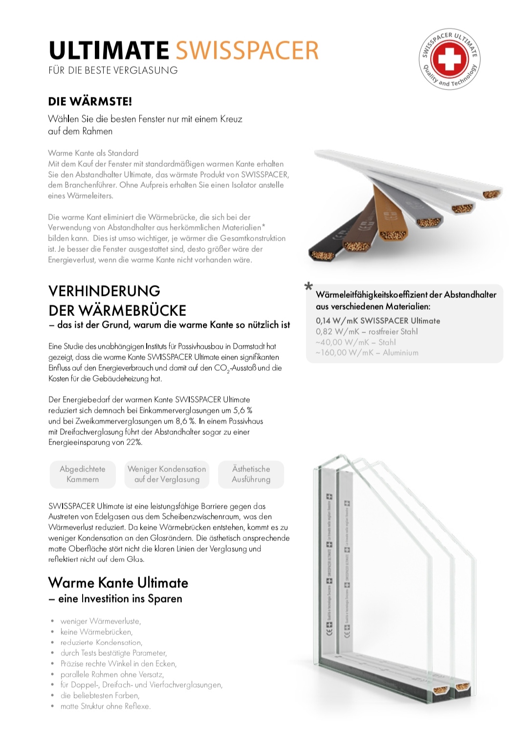 In unseren Produkten finden Sie die teuersten und mittelpreisigen Profile. Wir ergänzen Fenster und Türen mit dem warmen Swisspacer Ultimate Kupferprofil. Wir bemühen uns, das Produkt an jedes Kundenbudget anzupassen.